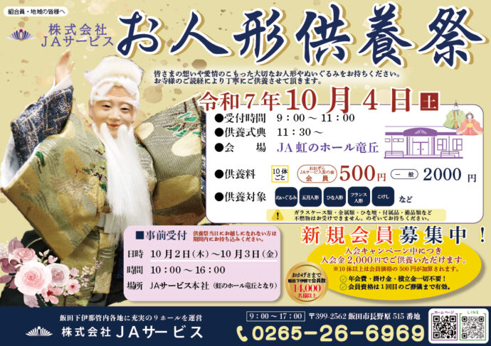 料 金 JAみなみ信州 定期積金 おおぞら会員様 JAサービス友の会会員様 10体ごと 500円